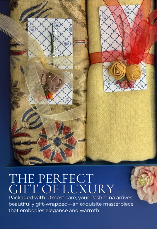OMVAI Embroidery Pashmina Stole Combo Gift Set in Pure Cashmere wool - Caramel Embroidered Stole with Beige Solid Stole (Set of 2 - For HIM and for HER)